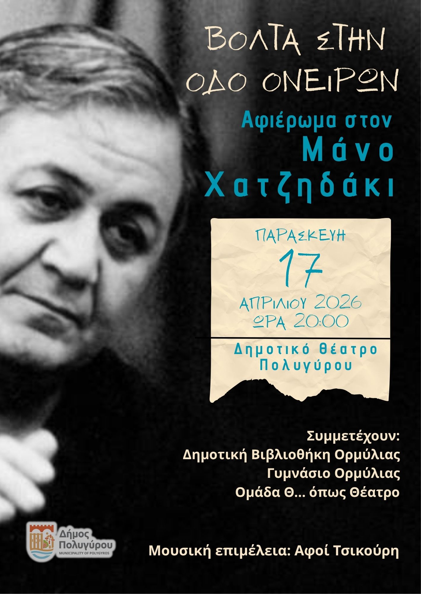 Το Δημοτικό Ωδείο Πολυγύρου διοργανώνει μουσική εκδήλωση την Τρίτη 14 Απριλίου στις 19:30