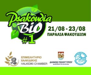 Η Έκθεση Βιολογικών Προϊόντων Ψακουδίων 2025 αναβιώνει και θα πραγματοποιηθεί σε συνεργασία με τον Δήμο Πολυγύρου και τον Σύλλογο Επαγγελματιών, Κατοίκων και Ιδιοκτητών Ψακουδίων στην Παραλία Ψακουδίων το διάστημα 21-23 Αυγούστου 2025 και ώρες 22:00 – 00:00